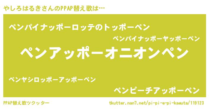 | 料理風あだ名 | 『やしろはるきのカルパッチョ風』 |