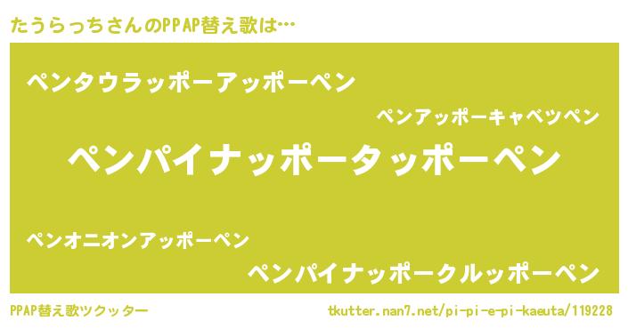 | ピコ太郎風あだ名 | 『ピコタ郎』『タウ十郎』『タタ太郎』 |