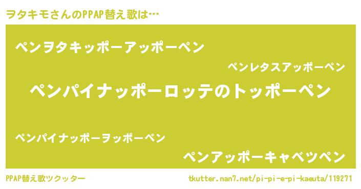 | ピコ太郎風あだ名 | 『ヲヲ太郎』『ヲタ一郎』『ピヲ十郎』 |