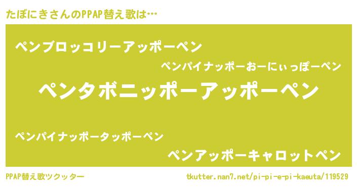 | 男性向けラノベタイトル風あだ名 | 『この素晴らしい世界にたぼにきを!』 |