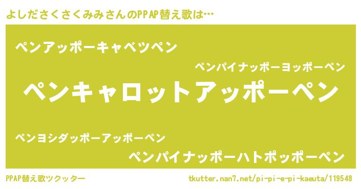 | 料理風あだ名 | 『よしださくさくみみのカルパッチョ風』 |
