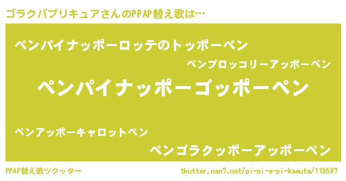 | ヘコむあだ名 | 『ゴラクバプリキュア(笑)』『ゴラお』 |