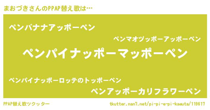 | ピコ太郎風あだ名 | 『ピコマ郎』『マコ三郎』『ピマ二郎』 |