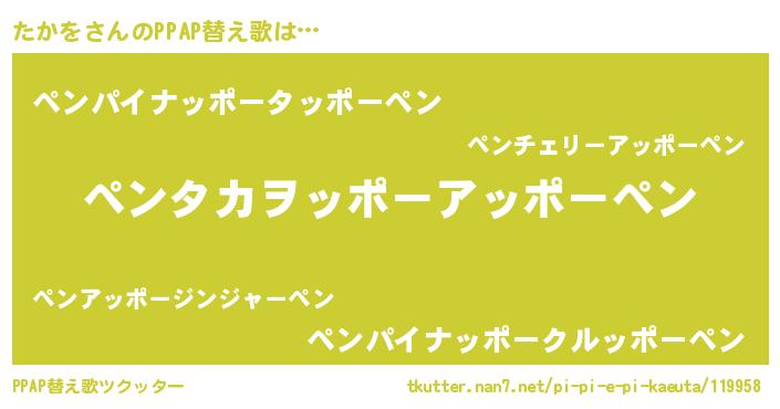 | ピコ太郎風あだ名 | 『タカ五郎』『ピコタ郎』『タタ太郎』 |