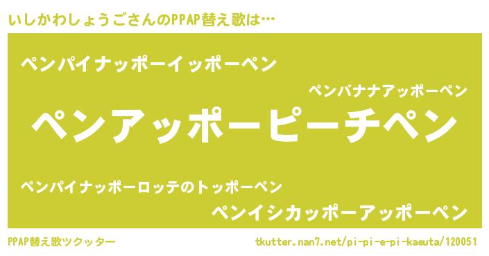 | 意味不明あだ名 | 『自称いしかわしょうご』 |