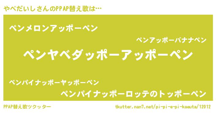 | ピコ太郎風あだ名 | 『ヤベ八郎』『ヤコ太郎』『ヤヤ太郎』 |