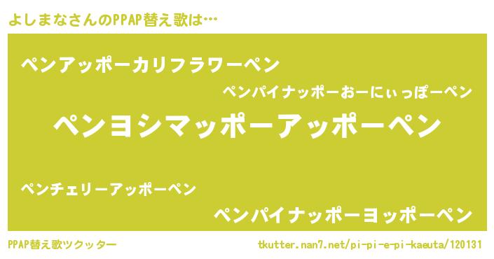 | ピコ太郎風あだ名 | 『ヨシ次郎』『ピヨ史郎』『ピコヨ郎』 |