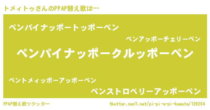 | 欧米人風あだ名 | 『ダニエルトメィトゥ』 |