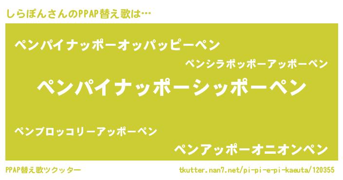 | 意味不明あだ名 | 『めかぶ科しらぽん属』『自称しらぽん』 |