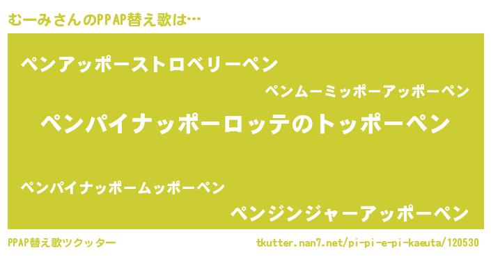 | 意味不明あだ名 | 『眠気覚ましガムむーみ味』『自称むーみ』 |
