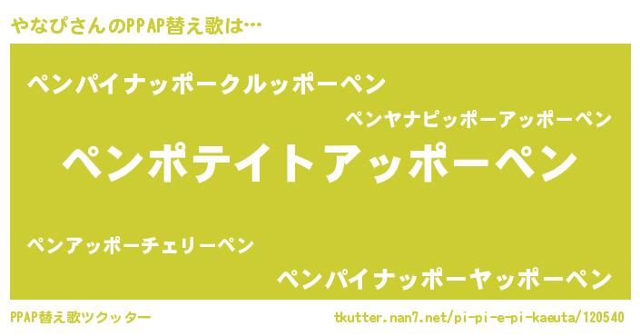 | 欧米人風あだ名 | 『マイケルやなぴ』『アンジェラ・やなぴ』 |