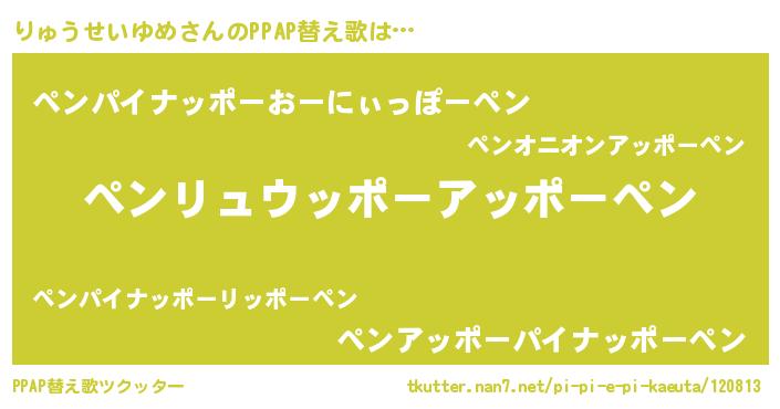 | 意味不明あだ名 | 『とにかく怪しいりゅうせいゆめ』 |