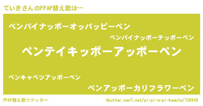 | ピコ太郎風あだ名 | 『テイ三郎』『テテ太郎』『ピテ六郎』 |