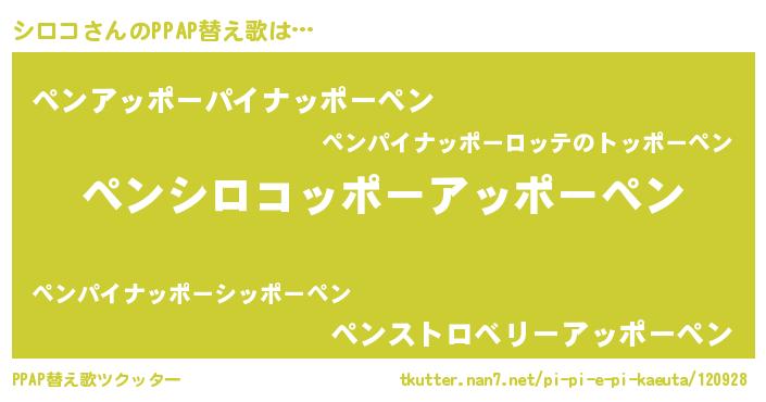 | ピコ太郎風あだ名 | 『シロ二郎』『ピシ五郎』『シコ太郎』 |