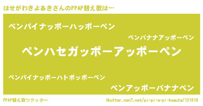 | ピコ太郎風あだ名 | 『ハセ六郎』『ピコハ郎』『ピハ次郎』 |