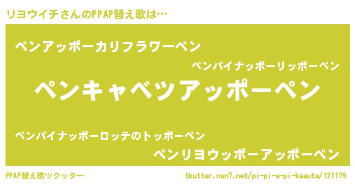 | 意味不明あだ名 | 『自称リヨウイチ』『ペロリンリヨウイチ』 |
