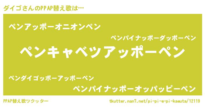| 意味不明あだ名 | 『ペロリンダイゴ』『ダイゴフォーエバー』 |