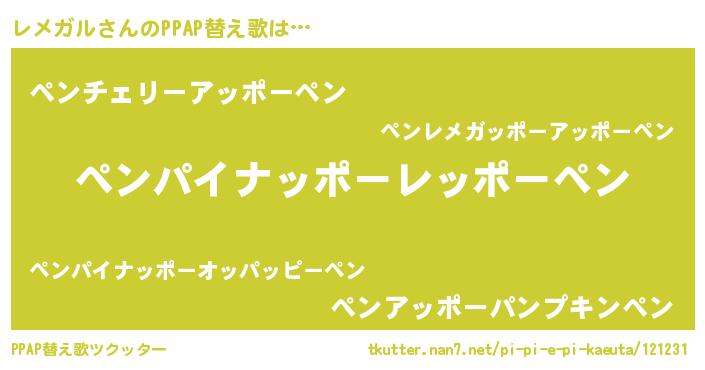 | 意味不明あだ名 | 『永久保存レメガル』『ペロリンレメガル』 |