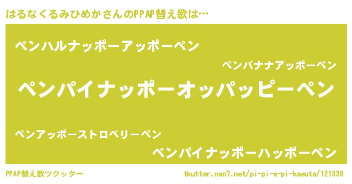 | ヘコむあだ名 | 『はるぷりん』『はるなくるみひめか(笑)』 |