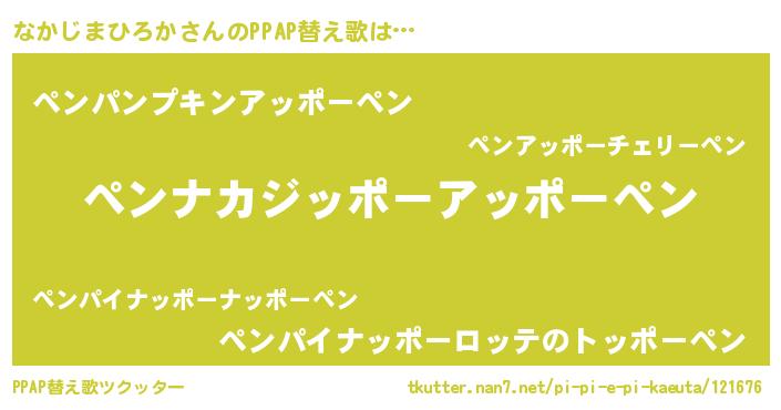 | ピコ太郎風あだ名 | 『ナカ八郎』『ナコ一郎』『ナナ太郎』 |