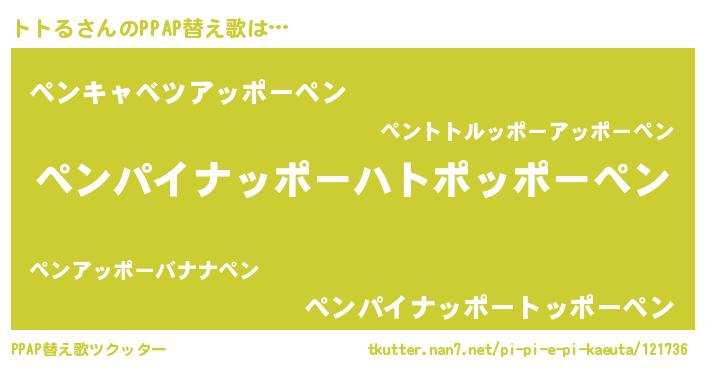 | 欧米人風あだ名 | 『ダニエルトトる』『トリンドルトトる』 |