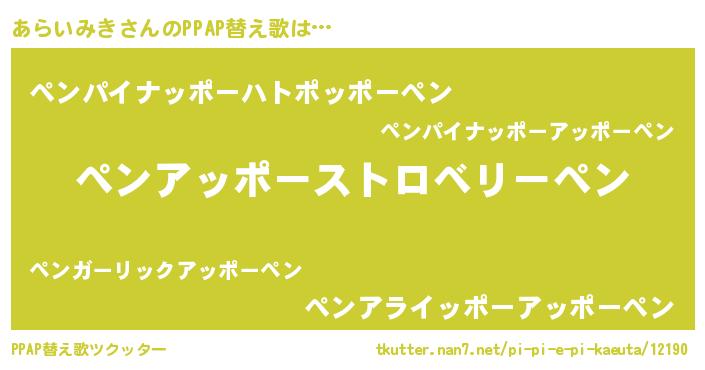 | 意味不明あだ名 | 『住所不定無職あらいみき(39歳)』 |