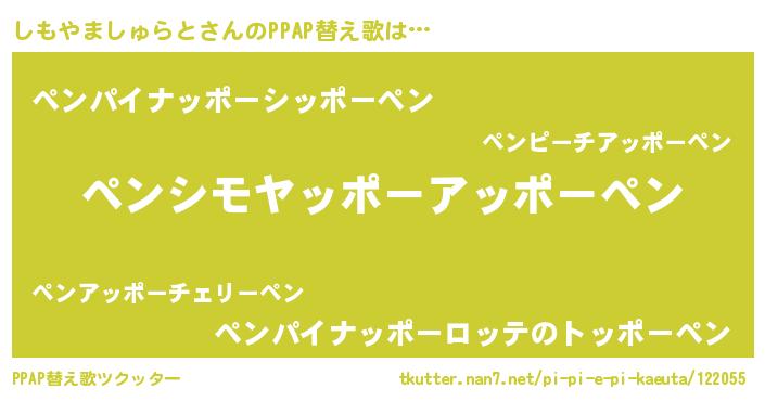 | ヘコむあだ名 | 『しもぷりん』『しもやましゅらと(笑)』 |