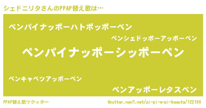 | 意味不明あだ名 | 『住所不定無職シェドニリタ(53歳)』 |