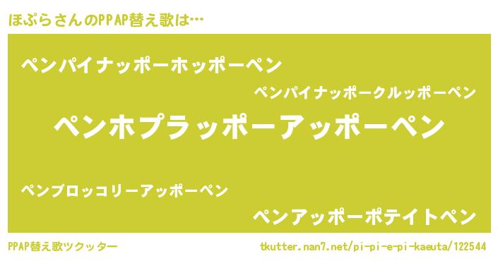 | 料理風あだ名 | 『ほぷらのカルパッチョ風』 |