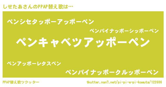 | 意味不明あだ名 | 『自称しせたあ』『ペロリンしせたあ』 |