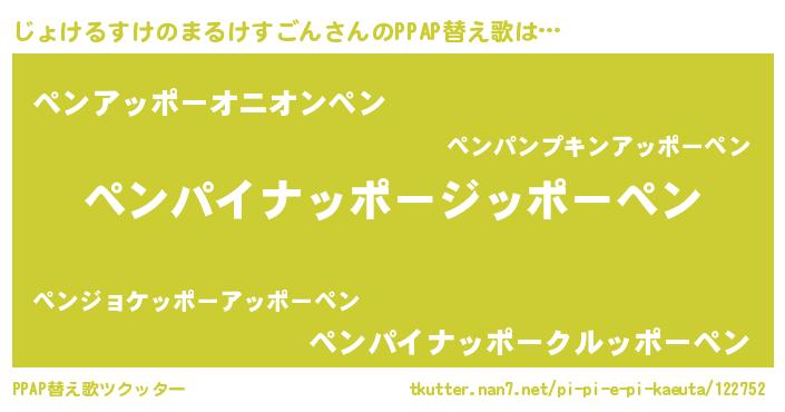 | 男性向けラノベタイトル風あだ名 | 『うちのじょけるすけのまるけすごんが世界を掌握している!』 |