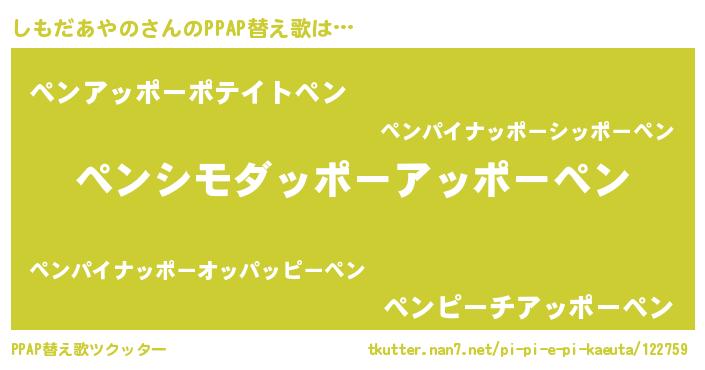 | 胡散臭い通販商品みたいなあだ名 | 『信頼と実績のペンダント…その名も「しもだあやの」』 |