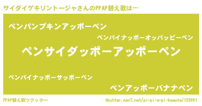 | 意味不明あだ名 | 『住所不定無職サイダイゲキリントージャ(89歳)』 |
