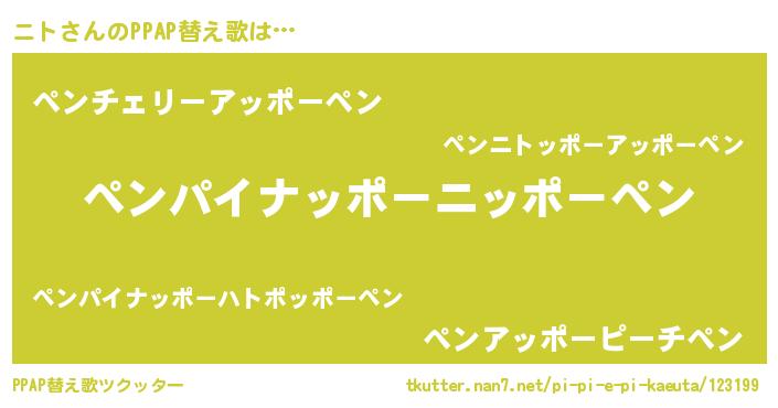 | ピコ太郎風あだ名 | 『ピコニ郎』『ニコ三郎』『ピニ一郎』 |