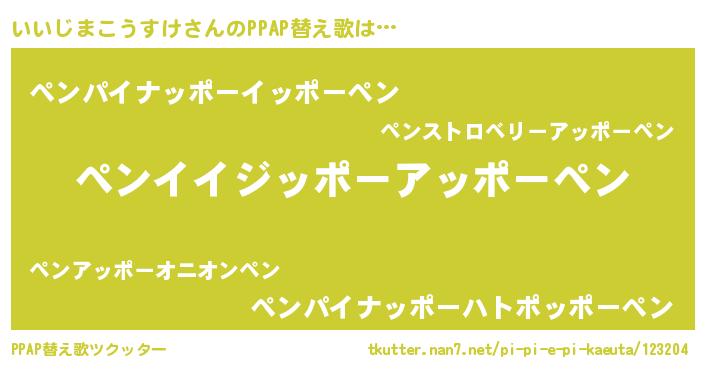 | 欧米人風あだ名 | 『アンジェラ・いいじまこうすけ』 |