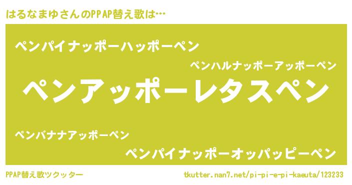 | 肩書あだ名 | 『はるなまゆ大統領』『はるなまゆ総統』 |