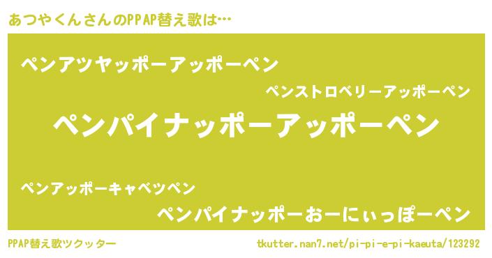 | ピコ太郎風あだ名 | 『ピコア郎』『アツ五郎』『アア太郎』 |