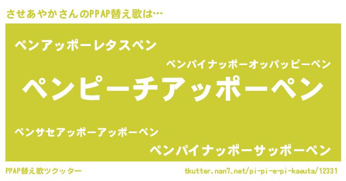 | 意味不明あだ名 | 『自称させあやか』『ペロリンさせあやか』 |