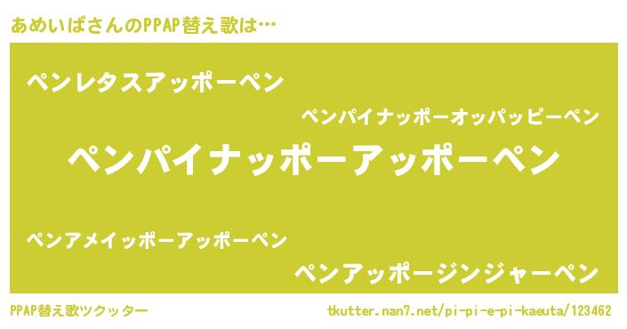 | 意味不明あだ名 | 『永久保存あめいば』『ペロリンあめいば』 |