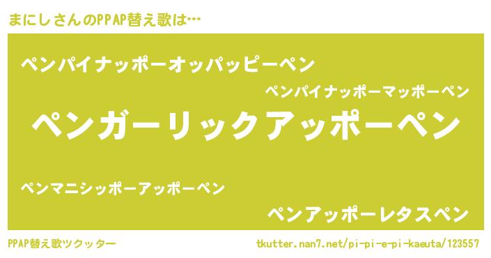 | 欧米人風あだ名 | 『マイケルまにし』『ダニエルまにし』 |