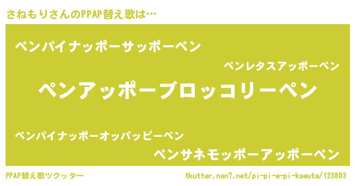 | 欧米人風あだ名 | 『さねもり・ステッグマイヤー』 |
