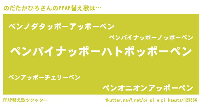 | 男性向けラノベタイトル風あだ名 | 『転生したらのだたかひろだった件』 |