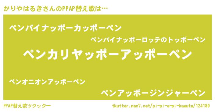 | 男性向けラノベタイトル風あだ名 | 『かりやはるきの嫁は女の子じゃないと思った?』 |