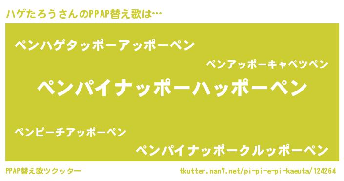 | ピコ太郎風あだ名 | 『ピコハ郎』『ハゲ八郎』『ハハ太郎』 |