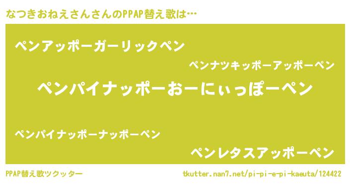 | ピコ太郎風あだ名 | 『ナナ太郎』『ピナ三郎』『ナコ五郎』 |