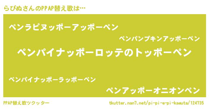 | 意味不明あだ名 | 『ヨモギ科らぴぬ属』『ペロリンらぴぬ』 |