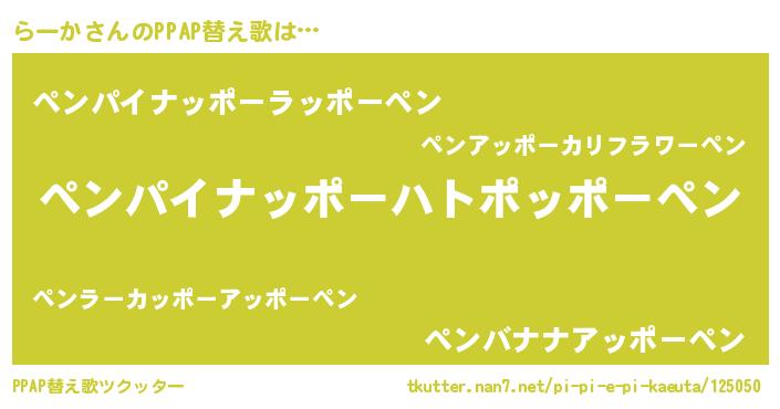 | ピコ太郎風あだ名 | 『ララ太郎』『ピコラ郎』『ラコ次郎』 |