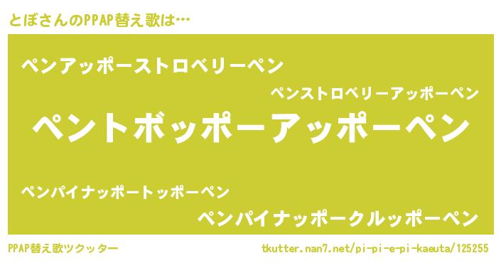 | ピコ太郎風あだ名 | 『トボ一郎』『ピト一郎』『トト太郎』 |