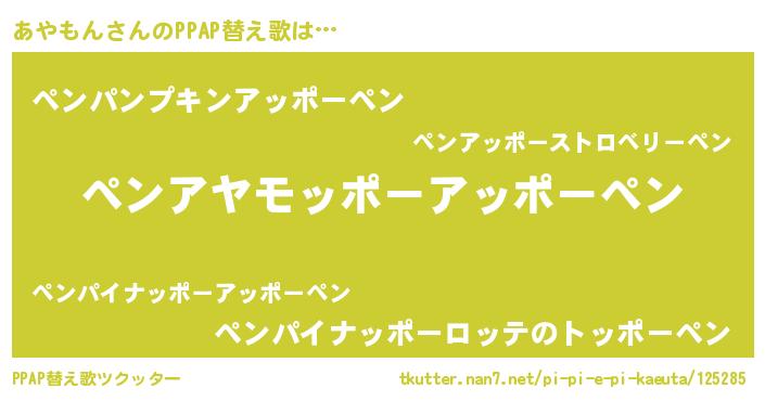 | ピコ太郎風あだ名 | 『アヤ五郎』『アコ二郎』『アア太郎』 |