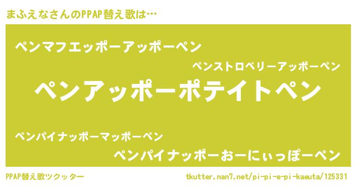 | ピコ太郎風あだ名 | 『ピマ五郎』『マフ次郎』『ママ太郎』 |